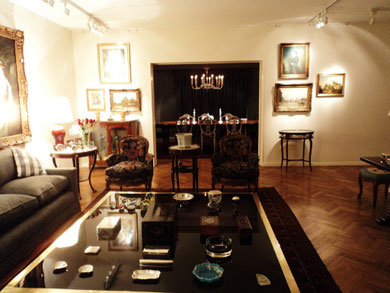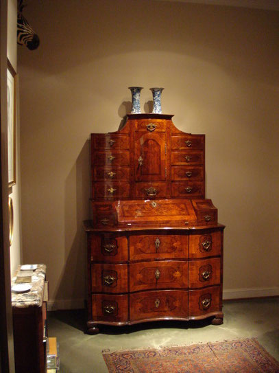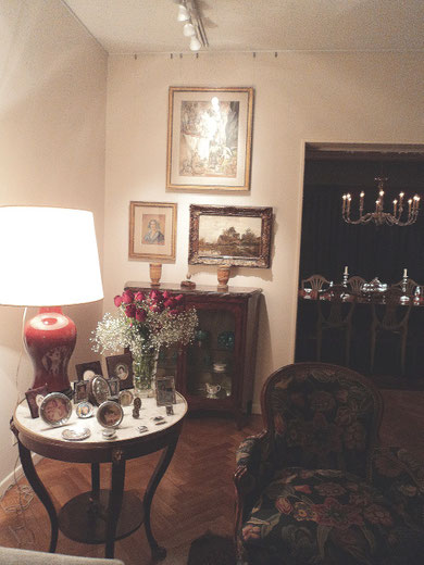 Otra vista del altar ceremonial para rendirle merecido culto a la diosa Diana de Rubens. Y al fondo, una espléndida cómoda secretaire austríaca del siglo XVIII, de muy buena factura, con alzada y escribanía, marqueterie y herrajes de bronce. Y como su pariente lejano del comedor, tiene arriba cacharros azules y blancos.