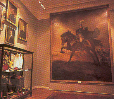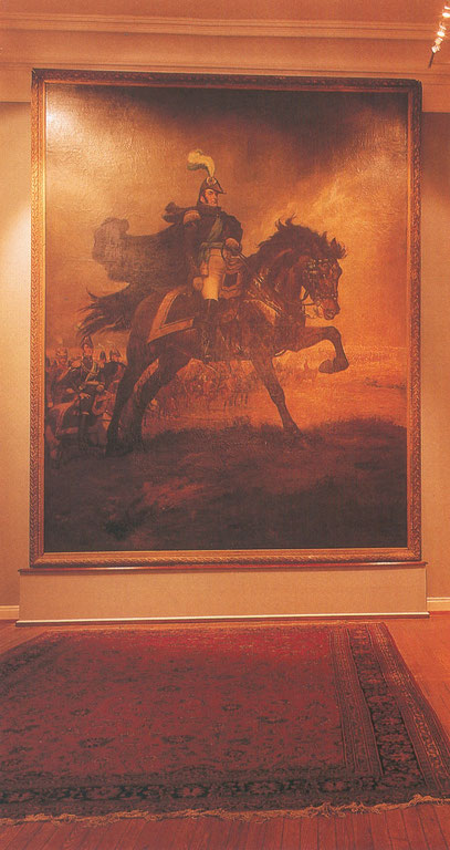 El monumental retrato del Libertador montado, pintado por George Scott en 1909, preside la segunda en importancia de las salas del Museo, donde se puede seguir la evolución del morrión y del uniforme de Granaderos desde su creación, en 1812. Este gigantesco óleo sobre tela mide nada menos que 4,47 x 3,48 m. Se lo ve al Libertador con su uniforme de Coronel Mayor de Granaderos, con la banda que usó después de la Batalla de Maipú, ya que entonces desempeñaba el cargo de General en Jefe del Ejército de los Andes, pero reteniendo su grado de Coronel Mayor. La alfombra persa antigua completa la sala apropiadamente, otorgándole calidad y calidez.