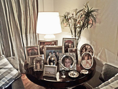 En el lugar donde estaba empotrado el cuadro con la Diana Cazadora de Rubens, se hizo este colorido collage mural con fotos de los dueños de casa, de su familia, de sus caballos preferidos, de las espectaculares rosas que cultiva la dueña de casa, etc., etc.
