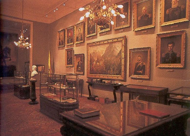 La sala principal del Museo, con el escritorio del Presidente Julio Argentino Roca y el libro de firmas de visitantes ilustres en primer plano. Más atrás se ven los retratos de muchos personajes ligados a la gesta emancipadora americana liderada por el General San Martín; el gran óleo de Franz van Riel sobre el cruce de los Andes por San Martín y sus huestes; vitrinas con documentos históricos, medallas y condecoraciones, objetos significativos, etc.; el busto del Libertador esculpido por Duilio Mositoni; sobre el dressoir negro, cofres con las tierras de los numerosos campos de batalla en los que dejó su impronta José de San Martín; banderas de países amigos y la foja de servicios del Libertador durante su estada en España. Las arañas de bronce, son de estilo Art Nouveau y simulan canastas con lirios que rematan en cada tulipa y su correspondiente lámpara.