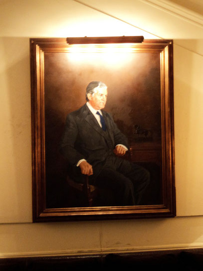 argentino Juan Lascano. Vásquez Mansilla fue Presidente del Jockey Club desde 1975 a 1990. El retrato queda enmarcado por los dos paños de pared de los cuales penden el cuadro de François Flameng