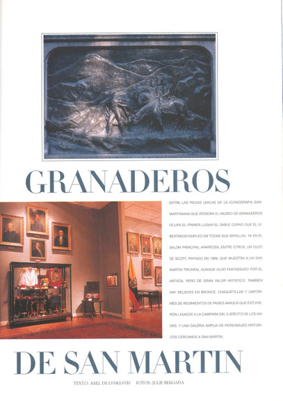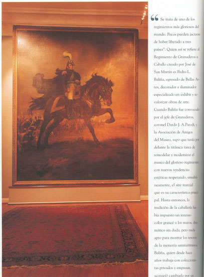 El enorme cuadro pintado por Scott en 1909, con la épica imagen del Libertador montado en un campo de batalla impone respeto. Sobre la izquierda, retratos de personalidades ligadas a la historia de las campañas sanmartinianas y a la del Regimiento de Granaderos a Caballo. En la vitrina se ven antiguos uniformes y morriones que permiten seguir los cambios habidos en sus diseños durante el transcurso de nuestra historia.