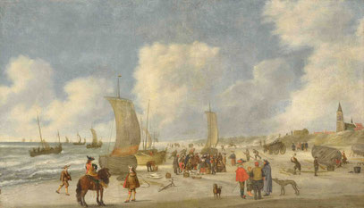 El antiguo óleo sobre tela, un paisaje de la costa holandesa con figuras, está firmado W. Herrmans y fechado 1671, abajo al centro. El marco que se le hizo acentúa más aún, si cabe, el clima holandés.