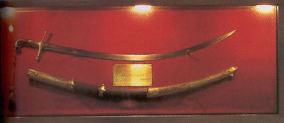 El sable corvo del Libertador está guardado en custodia dentro de un temple blindado, construido especialmente, en el Salón de los Grandes Símbolos Sanmartinianos, a la entrada del edificio de la Jefatura del Regimiento.