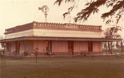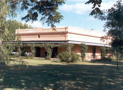 Una típica casa de campo construida en 1912, con la clásica planta rectangular cerrada rodeando a un patio central, que luego termina techándose y siendo un ambiente más. Los cuatro dormitorios dan sobre ese ambiente. La impronta post-colonial tiene una influencia marcadamente italianizante. La entrada principal, al frente, sobre la galería de 200 metros cuadrados de vereda de cerámica colorada, elevada algo más de 30 centímetros por encima del nivel del pasto. Alero de chapas de zinc, con cenefa decorativa fabricada en los E.E.U.U. todo alrededor. Los jazmines azóricos y del país abrazan la casa y rompen la rigidez de las columnas que sostienen el alero, acompañando con su olor omnipresente la paz de puestas de sol memorables.