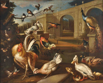 Con este decorativo cuadro del comedor principal, atribuido al pintor barroco holandés del siglo XVII Melchior d'Hondecoeter, pasó algo increible: se le veían sólo cinco pájaros y, con la iluminación adecuada, le aparecieron veintidos más.
